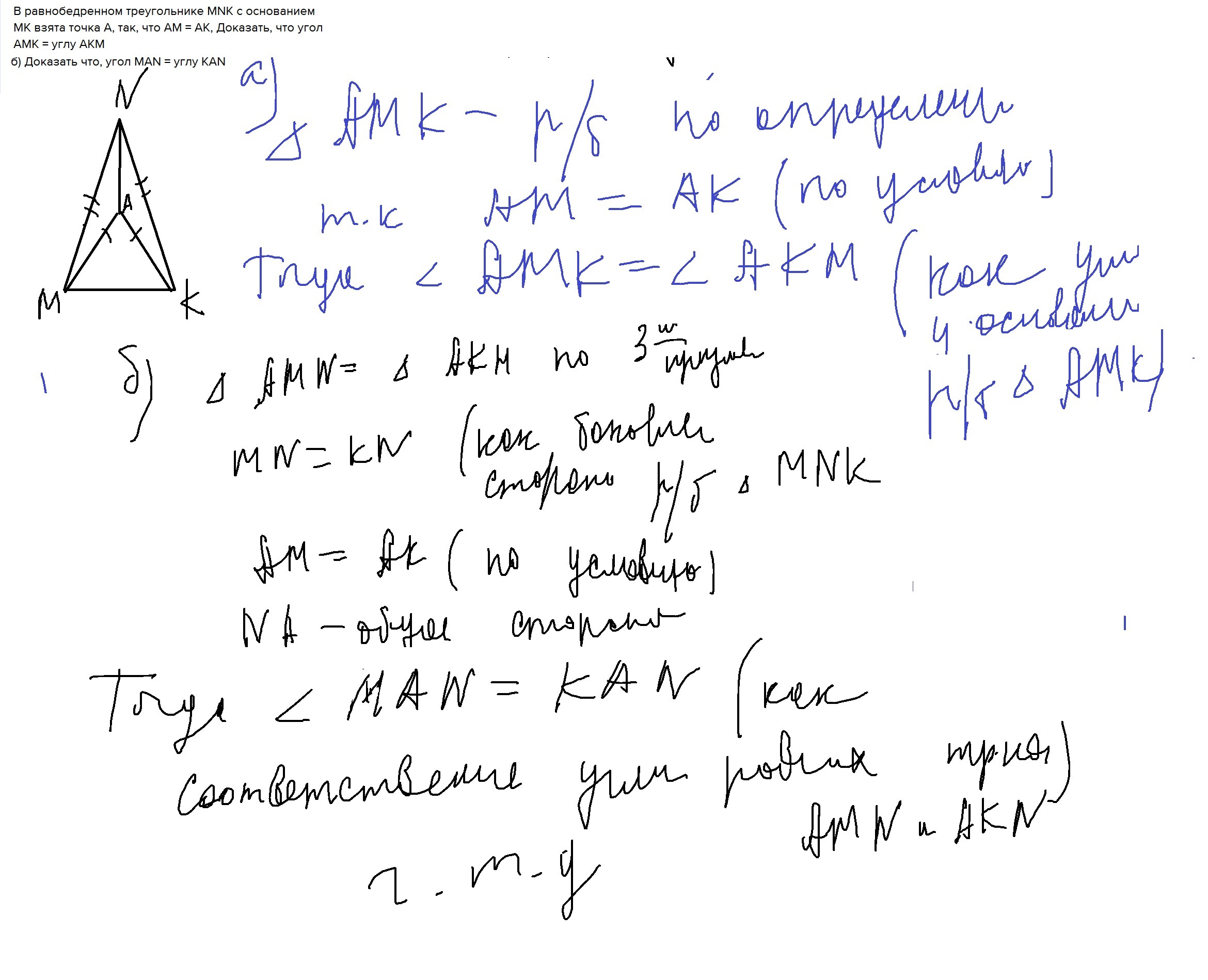 ∆АМК-равнобедренный по определению,т.к.АМ=АК (по условию).Тогда ∠АМК=∠АКМ (как углы у основания этого равнобедренноо тр-ка)