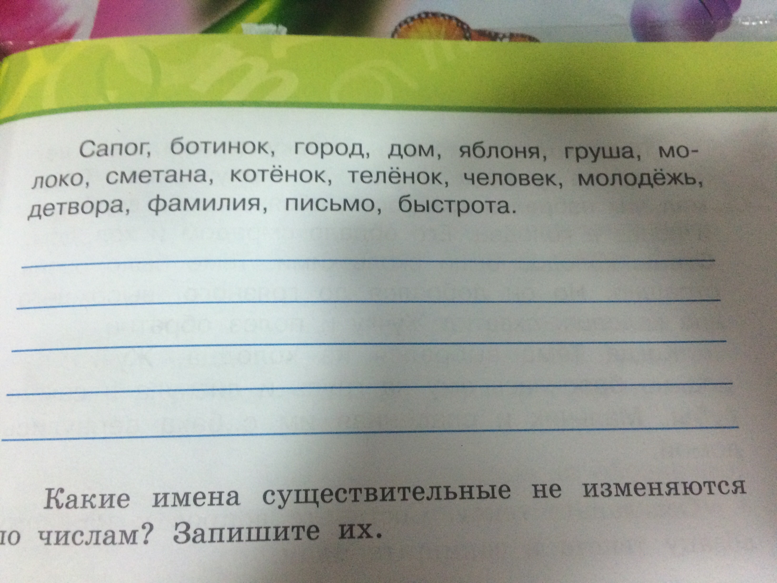 сапог ботинок город дом яблоня груша котенок теленок человек фамилия письмо