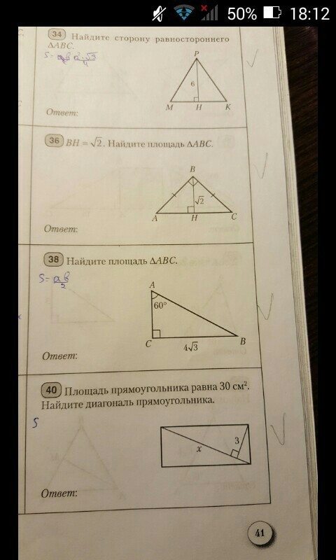 S = ah/2 = 2 корня из 2 × корень из 2 / 2 = 2 × 2 / 2 = 2