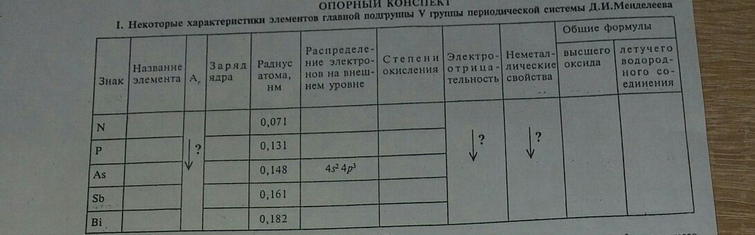 где стрелочки вниз надо написать как изменяется это(увеличивается или уменьшается или и то и другое)