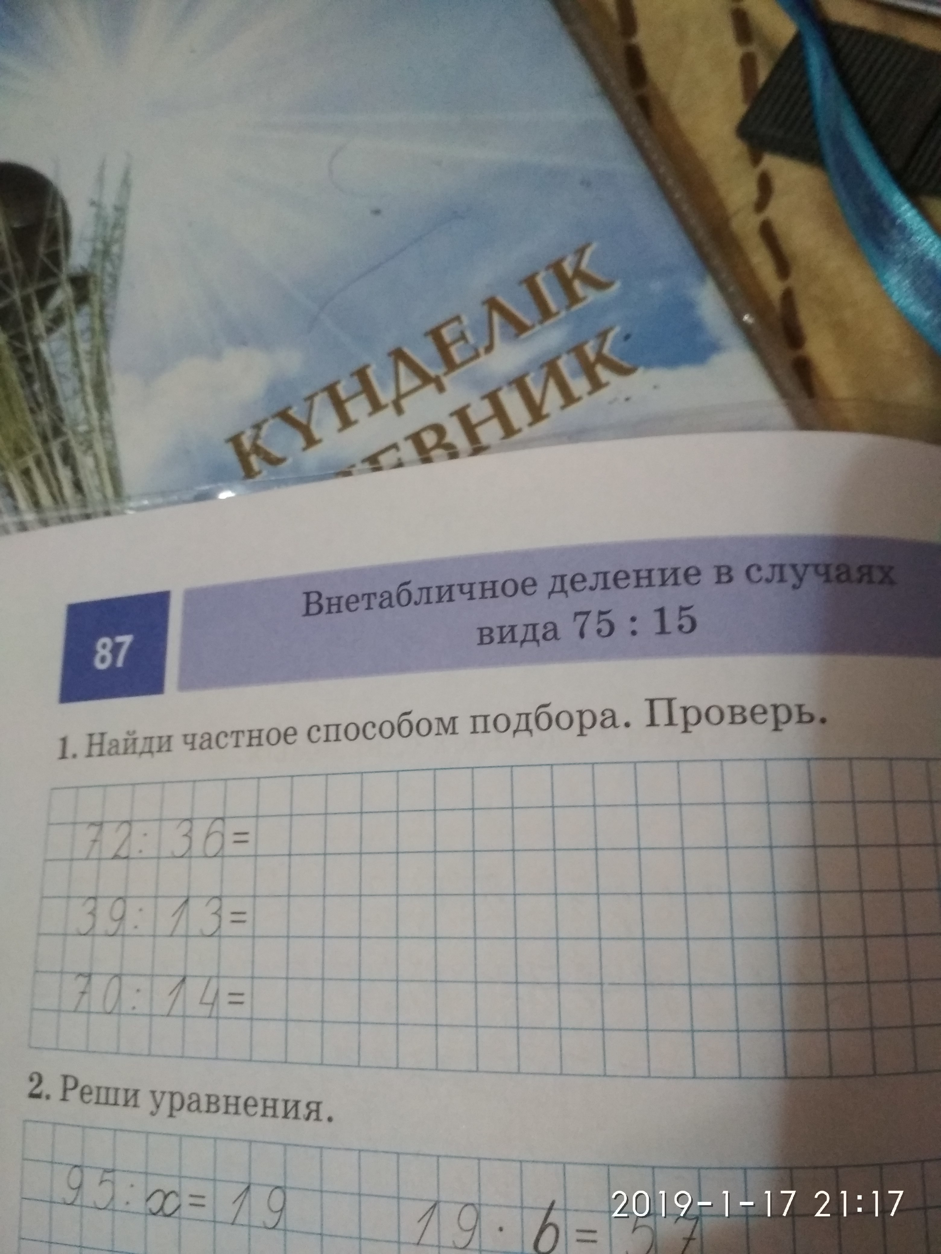 Помогите пожалуйста. Нужно найти частное способом подбора и проверить. 72:36; 39:13; 70:14.