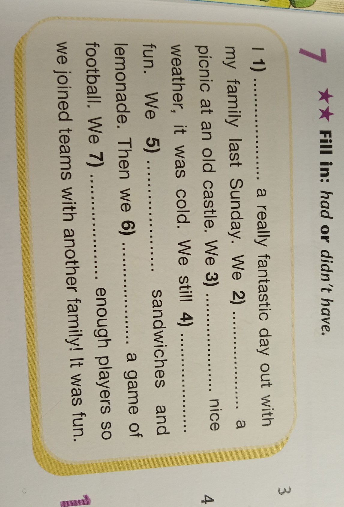 1)Had 2)had 3)didn’t have 4)had 5)had 6)had 7) didn’t have