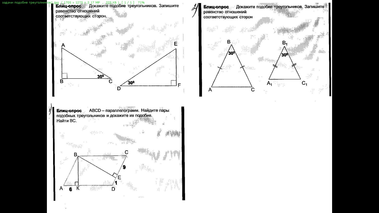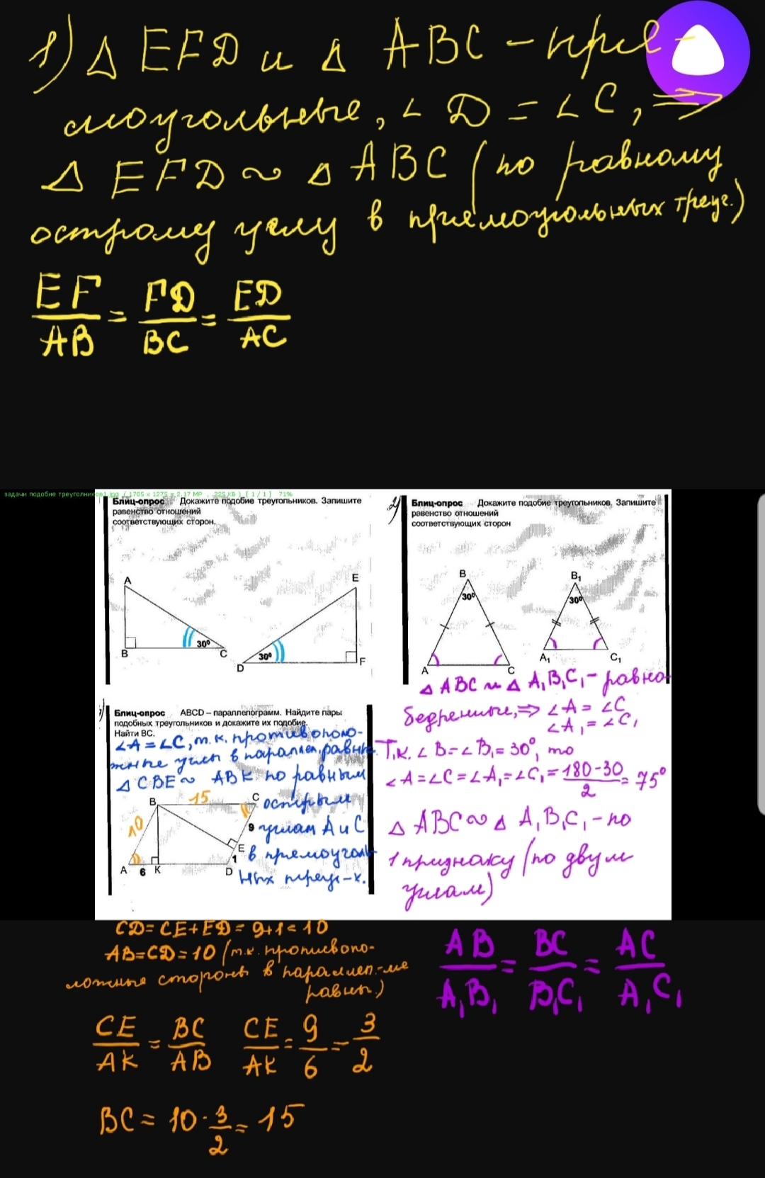Два прямоугольных треугольника подобны если у них есть по равному острому углу.