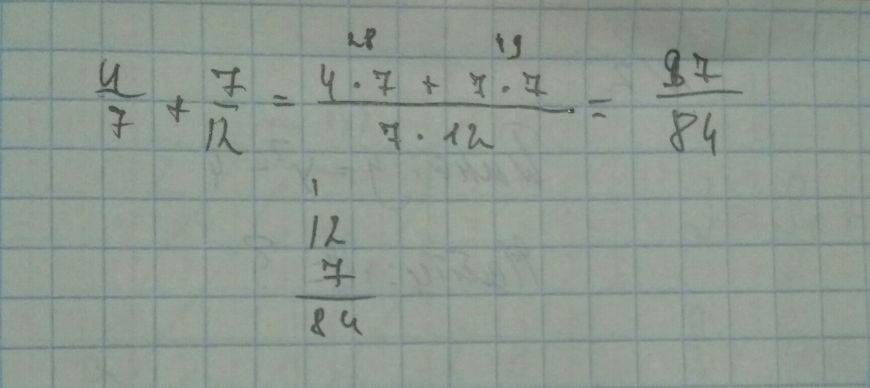 Находим ОДЗ:7*12=84; (4*12+7*7)/84=97/84