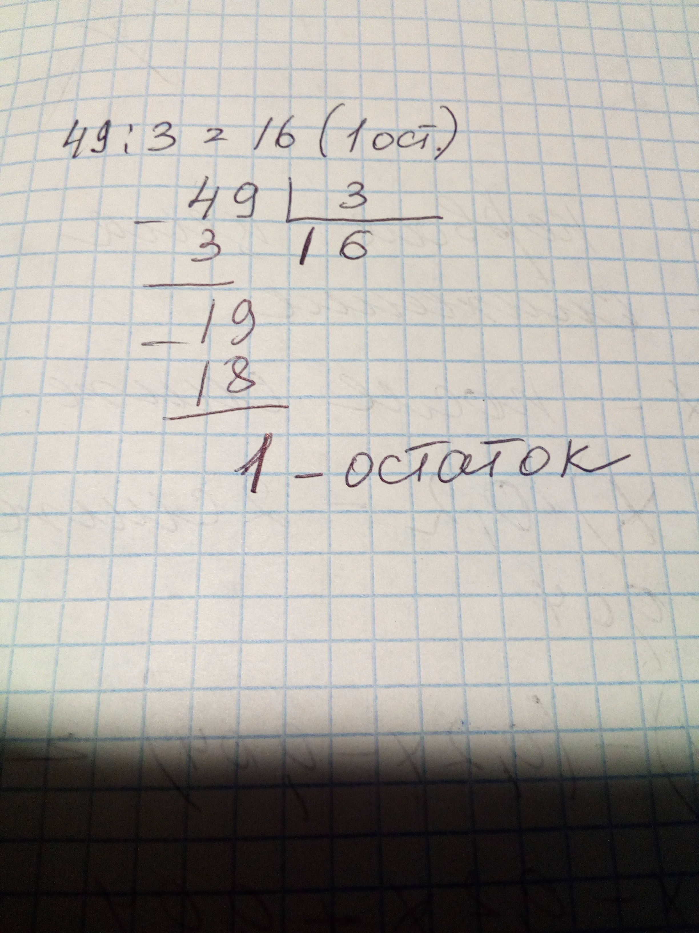 Помогите пожалуйста выполнить деление с остатком 49:3=