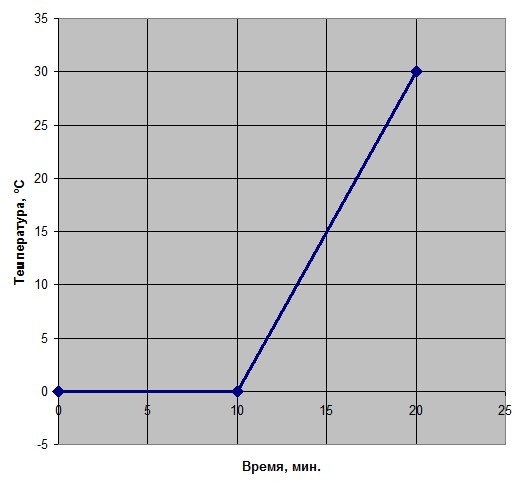 Первые 10 минут энергия, сообщаемая кастрюле плиткой, расходовалась на плавление льда.