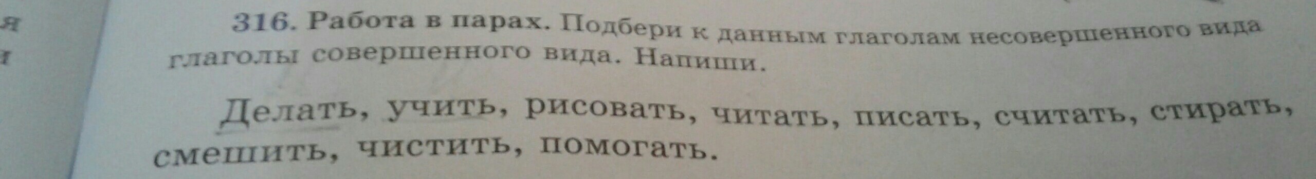 Сделать, выучить , нарисовать, прочитать, написать, посчитать, постирать, рассмешить, почистить, помочь.
