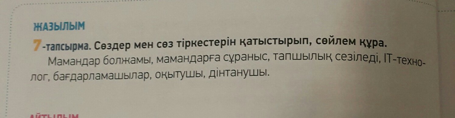 7 упражнение. Составте предложения используя данные слова и словосочетание.