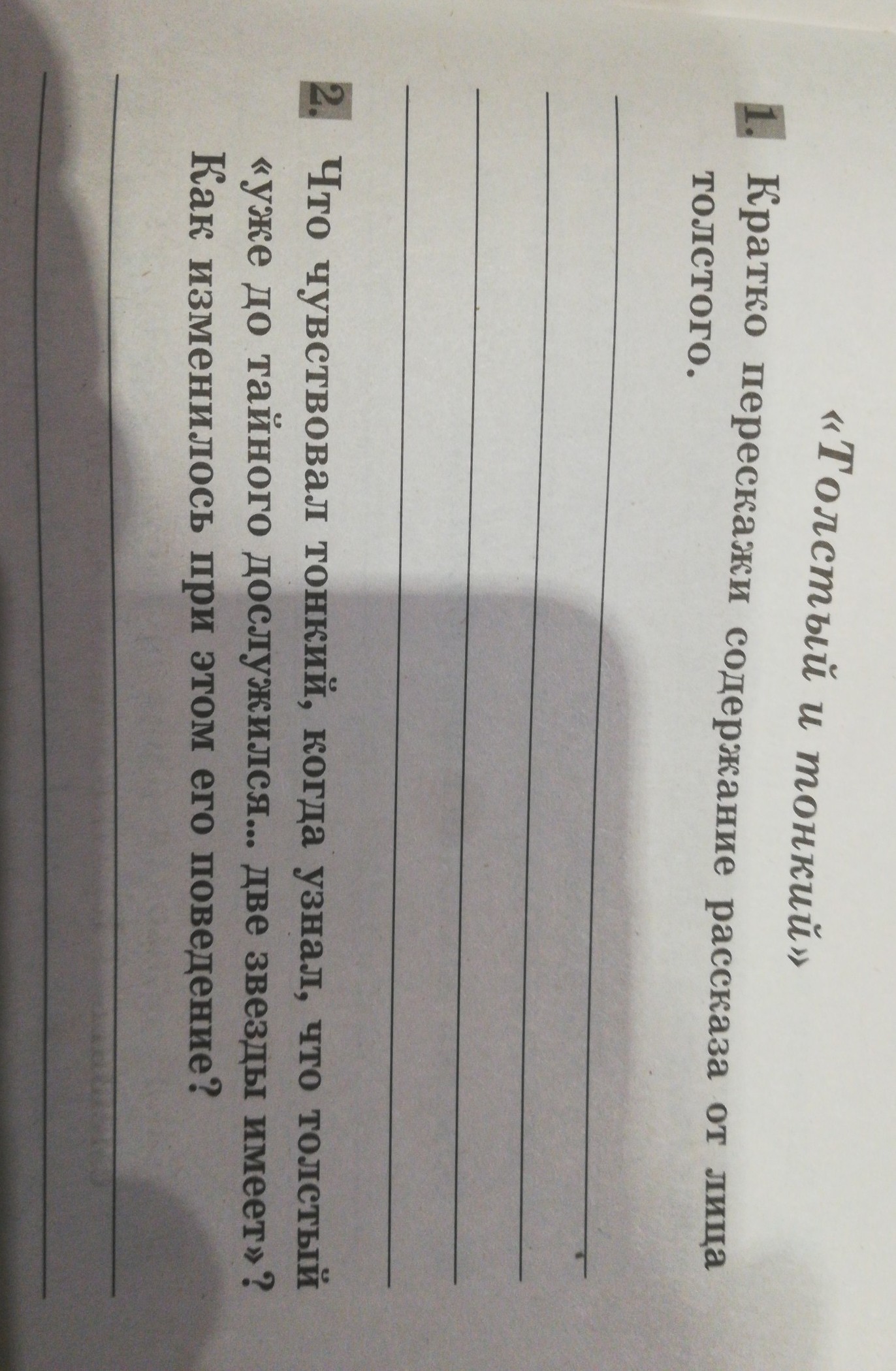 1.Толстый и тонкий встречались на вокзале.тонкий вышел из вагона со своей женой и сыном.толстый в то время сидел и аппетитно обедал.после у них завязался разговор.Дальше не помню...прости
