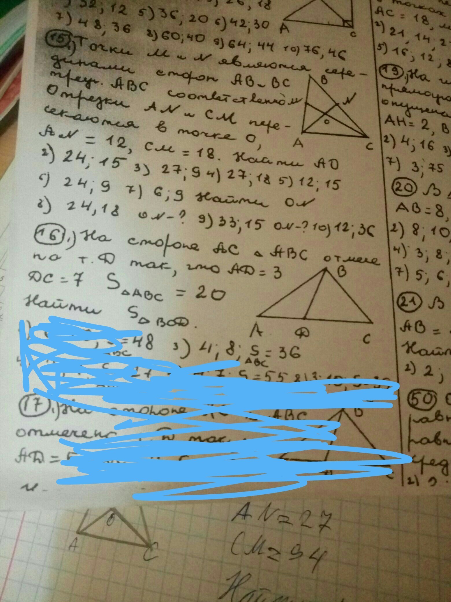 на стороне ас треугольника авс отмечена точка д так что ad 4 dc 8 площадь 36 найти площадь треугольника bod