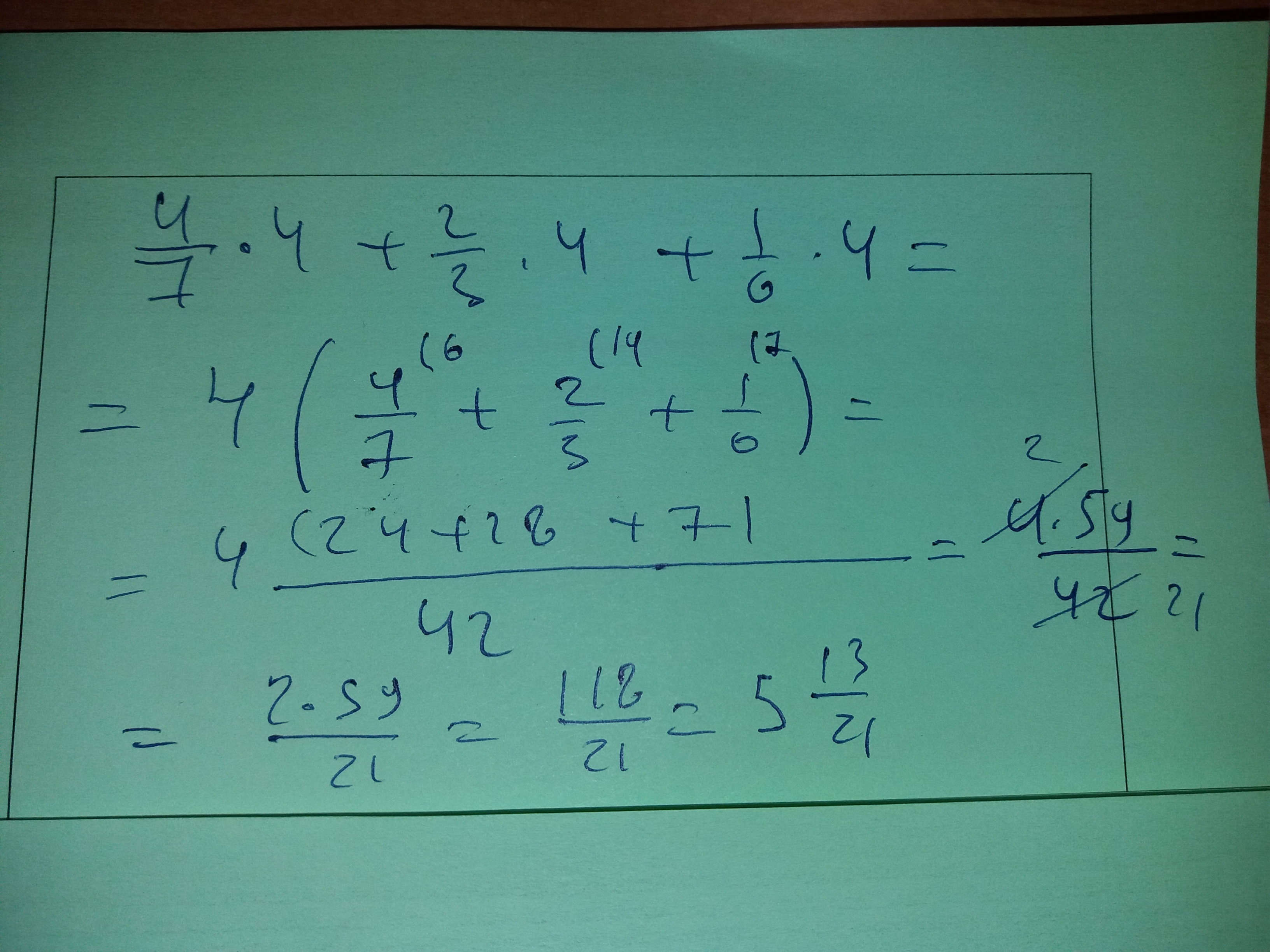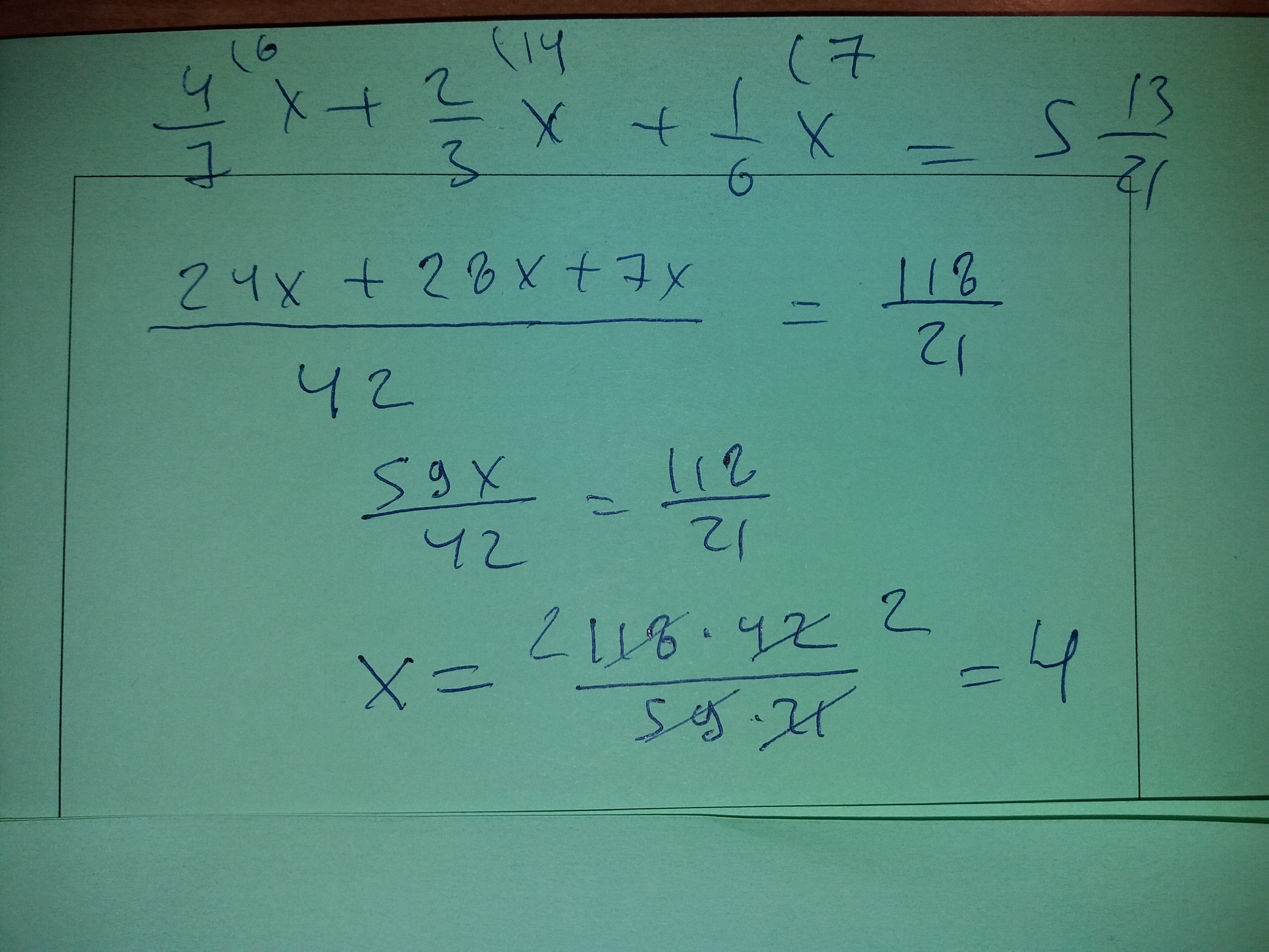 (24/42)x+(28/42)x+(7/42)x=118/21