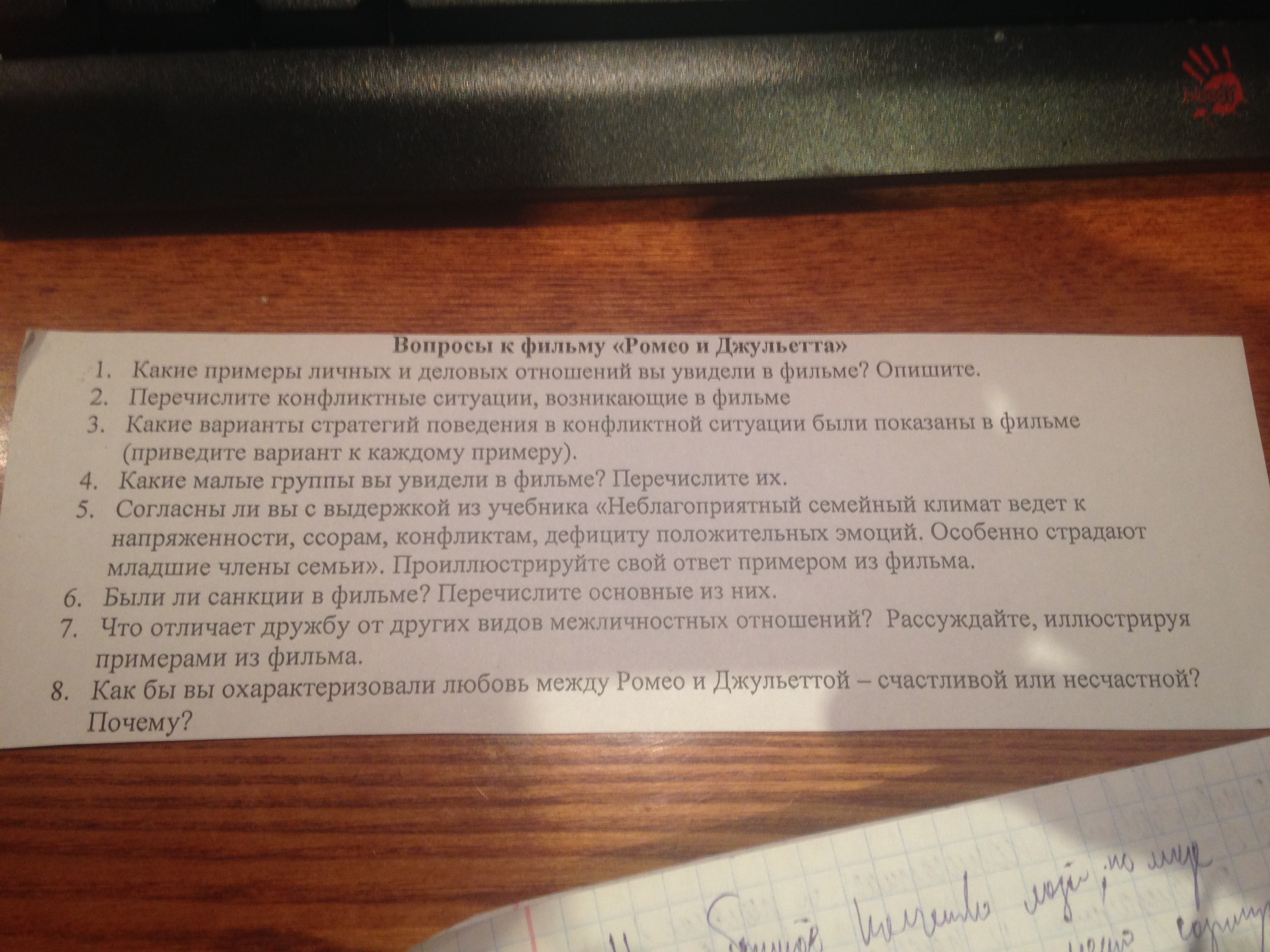 Но для меня, например, основным конфликтом будет противоречие между искренними, живыми чувствами молодёжи и отношением взрослых к жизни, к своей вражде, к порядкам, которые существуют уже давно. То есть конфликт между жизнью и мертвечиной.