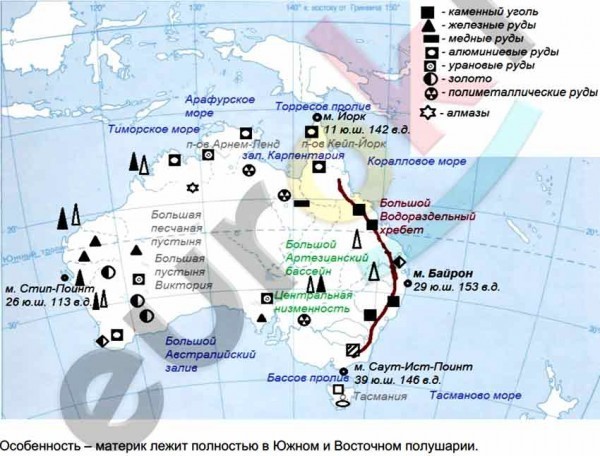 Отметьте и подпишите на карте названия крайних точек Австралии . Определите их географическое координаты и внесите в легенду