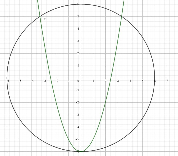 графиком первого уравнения есть окружность с центром (0;0) и радиусом 6 ед.