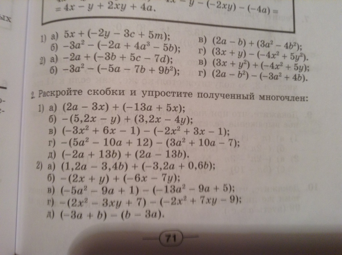 д) ( -2a + 13b ) + ( 2a - 13b ) = - 2a + 13b + 2a - 13b = 0