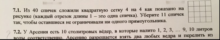 Из 40 спичек сложили квадратную сетку 4 на 4 как показано на рисунке (далее прикреплено фото)