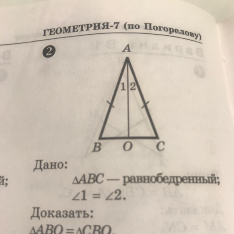 Так как треугольник равнобедренный значит ∠B=∠C, AB=AC, второй признак равенства треугольников (по стороне и двумя прилегающими углами) Если сторона и два прилегающие к ней угла одного треугольника соответственно равны стороне и двум прилегающим к ней углам другого треугольника, то такие треугольники - равны.