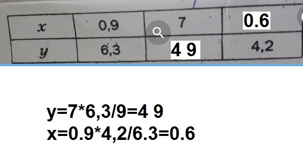 заполните таблицу, если величина у обратно прямопорциональна величине х.