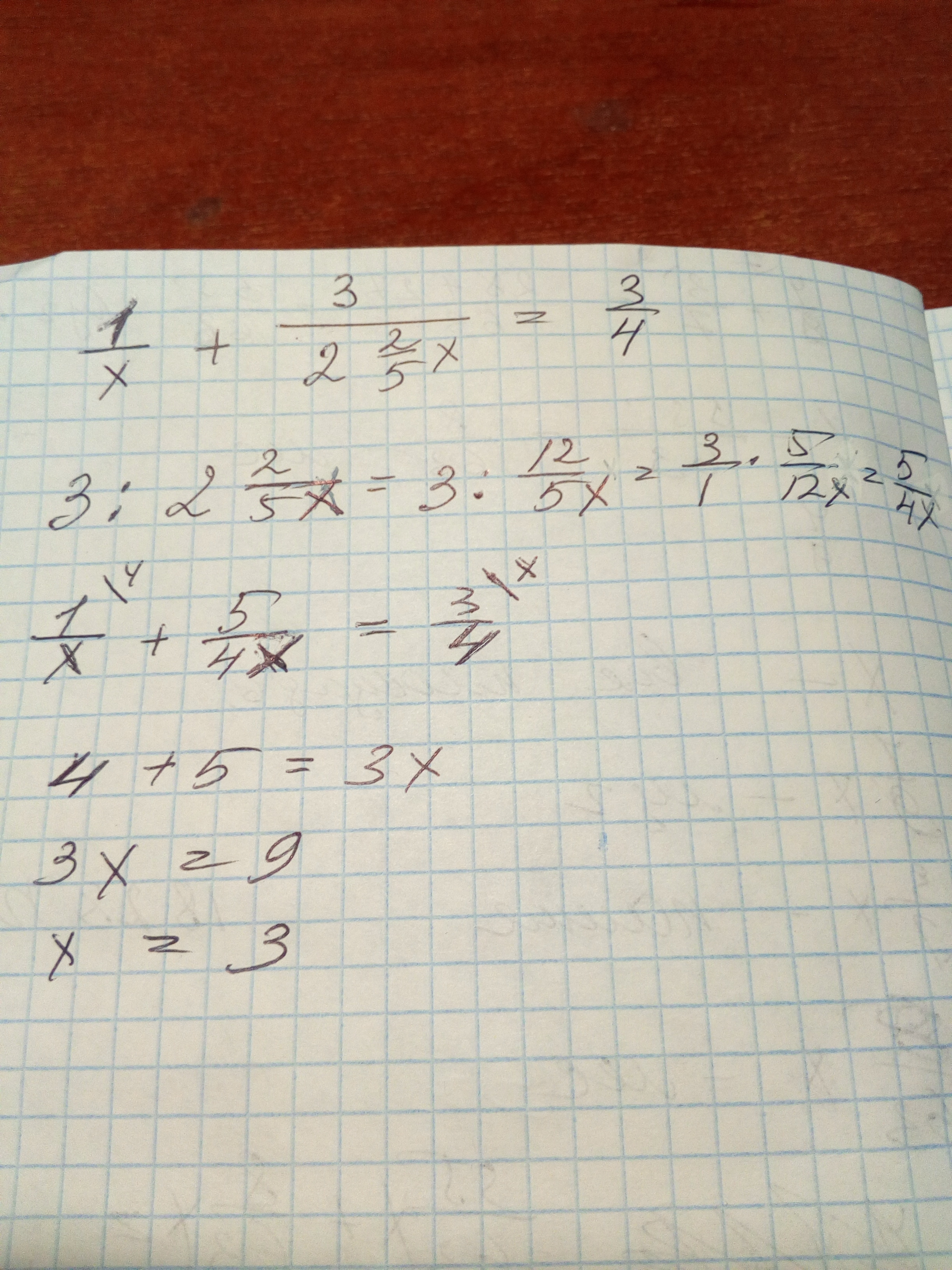 1/x + 3/2 2/5x = 3/4 Помогите пожалуйста!