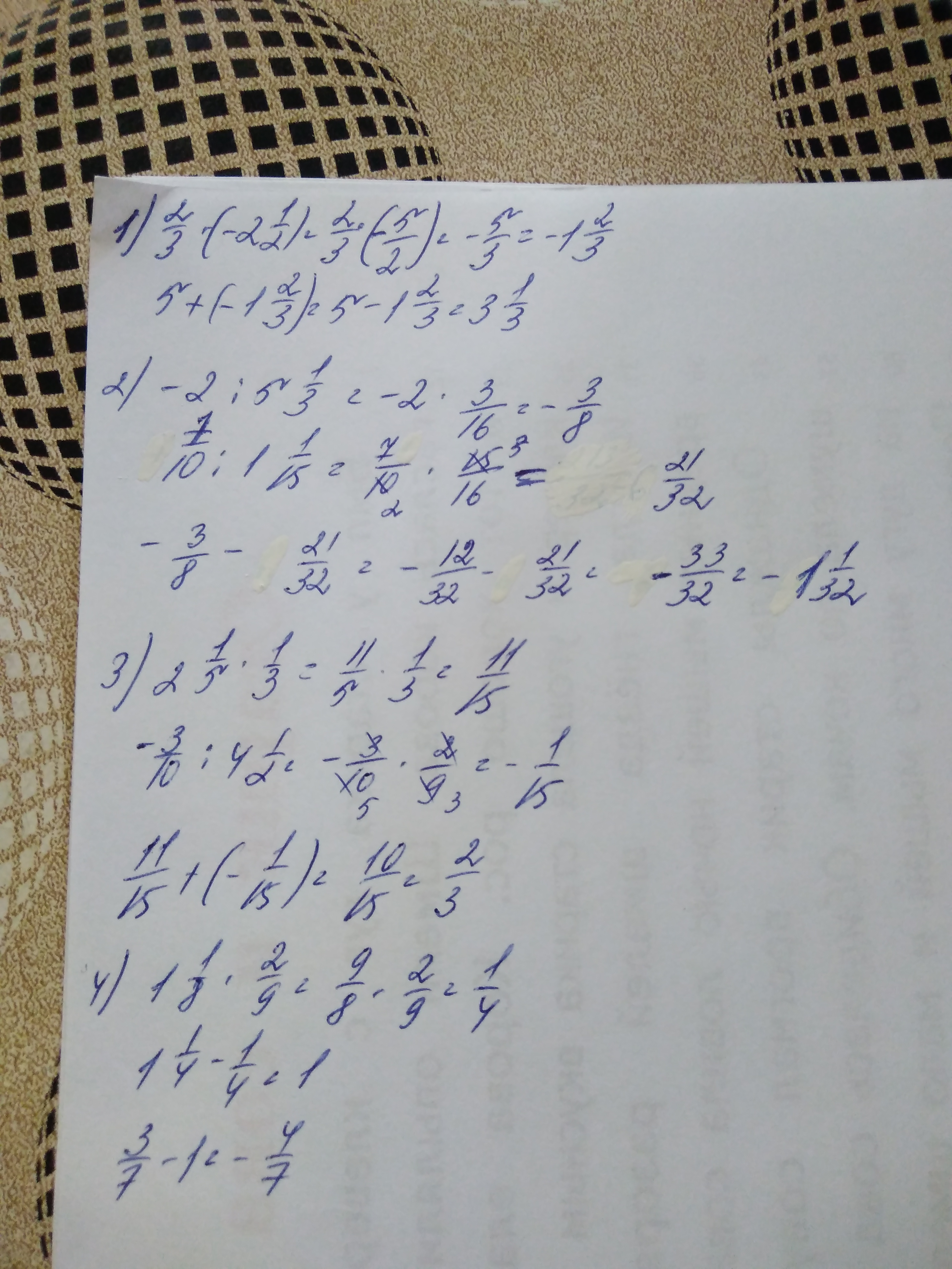1.5 + 23*(-2 12) 2.-2:5 13-710:1 (целая) 115 3.2 15*13+(-310):4 12 4.37-(1 14-1 18*29)(Смешанные дроби