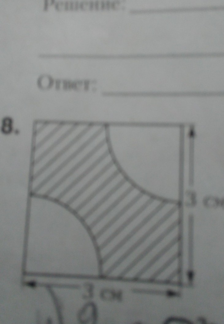 Площадь полосатой фигуры = площадь квадрата - площадь полукруга=