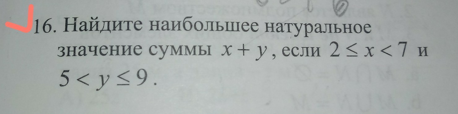 Пошаговое объяснение:наибольшое значение х=6,а у=9.Тогда х+у=6+9
