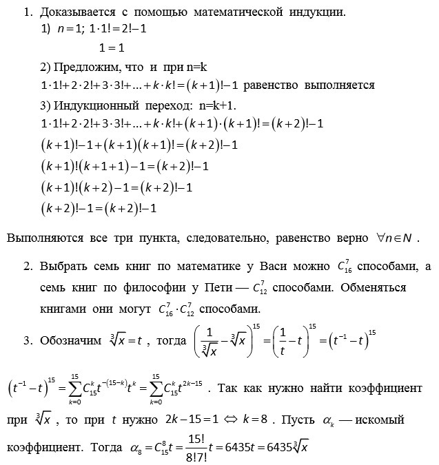 2. У Вани 16 книг по математике, а у Пети 12 книг по философии. Сколькими способами они могут обменяться по 7 книг?