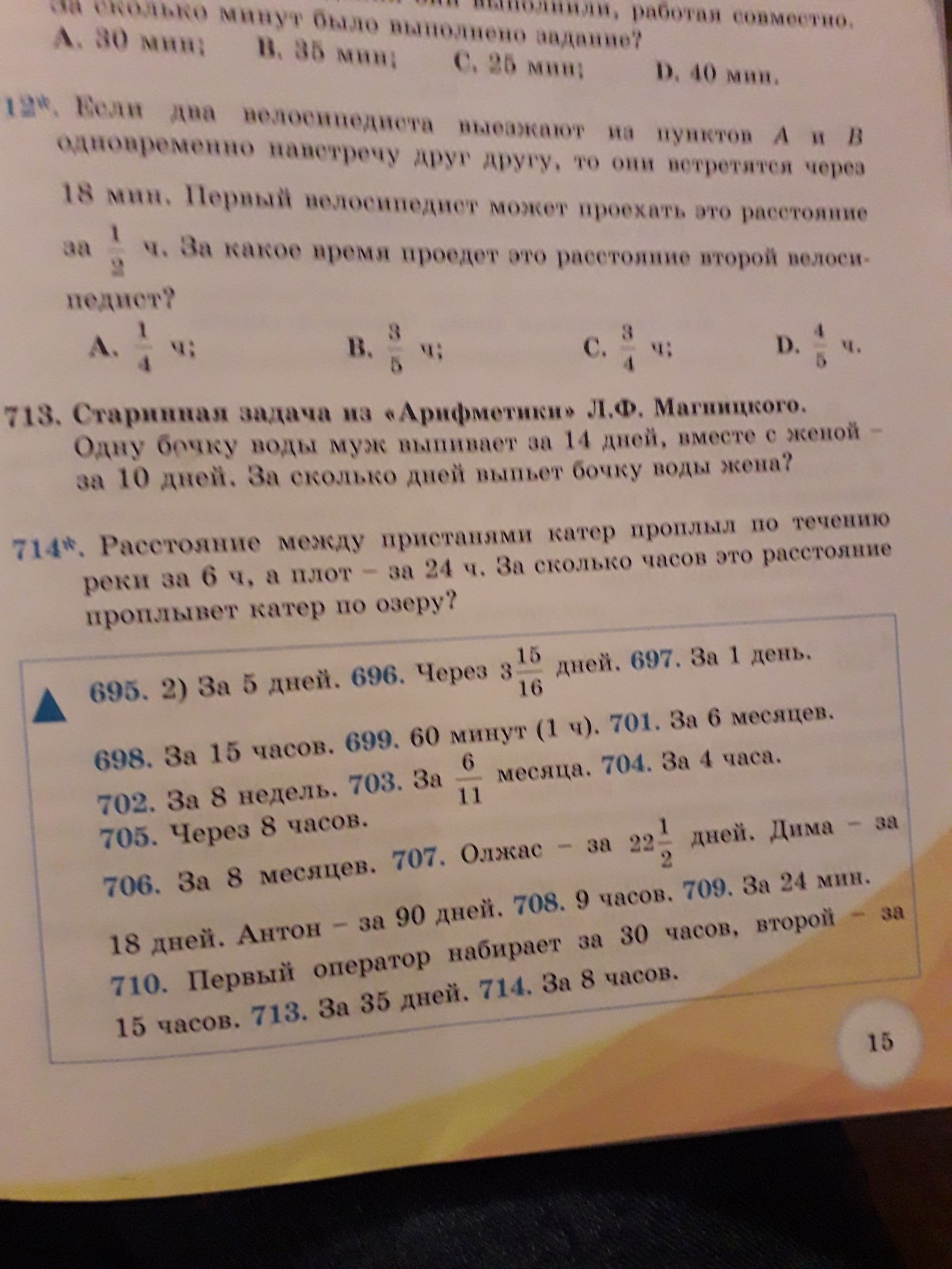 3) 1/6 - 1/24 = 4/24 - 1/24 = 3/24 = 1/8 скорость катера собственная