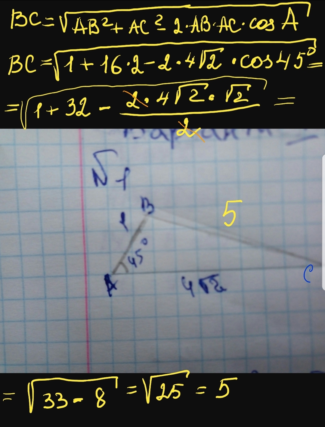 По теореме косинусов