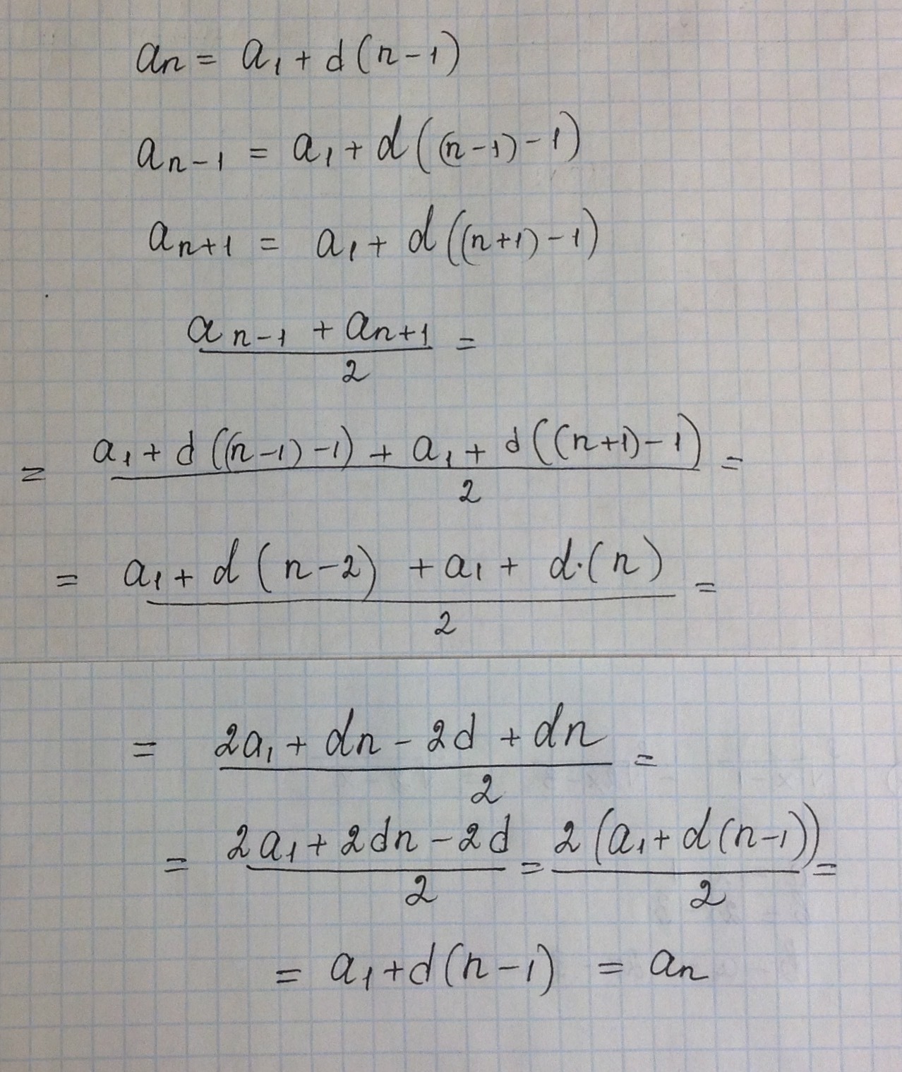 докажи, что это среднее арифметическое (вот эта фотография), если (An) - арифметическая прогрессия