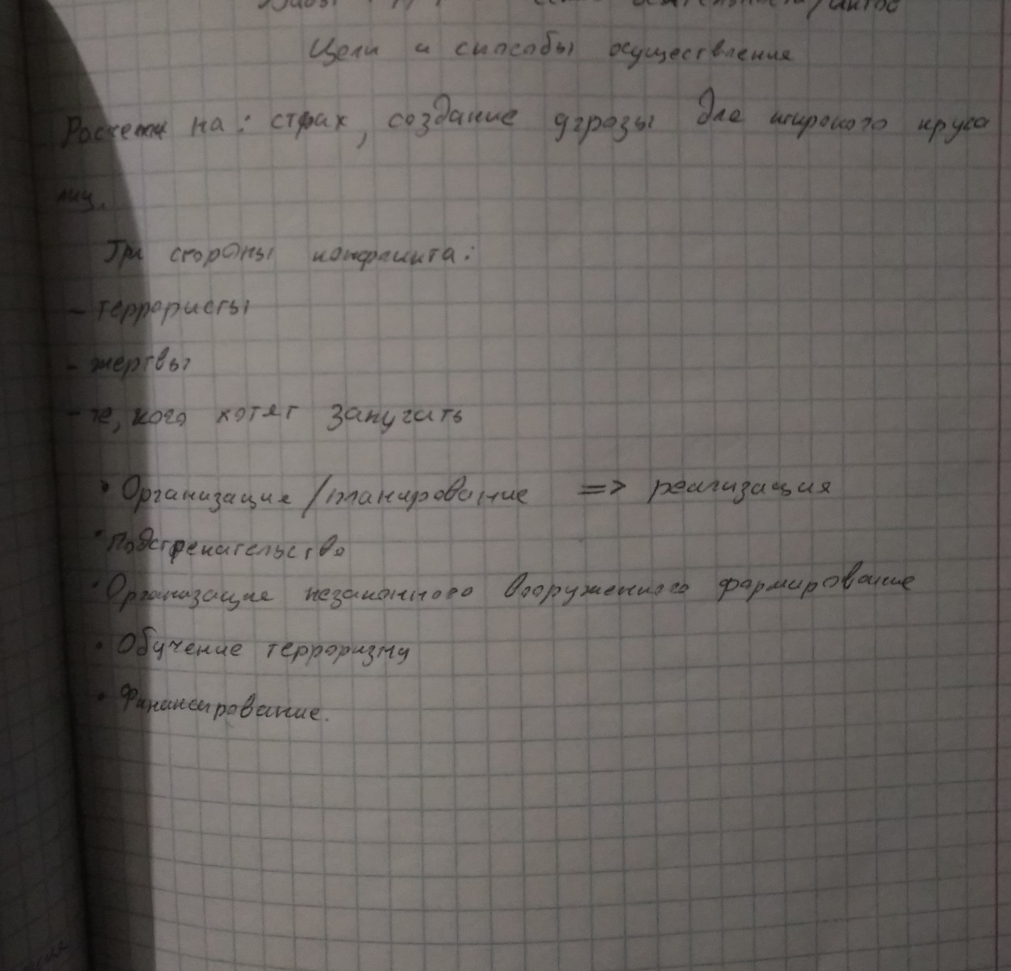 конспект на тему: виды террористической деятельности и террористических актов, их цели и способы осуществления.