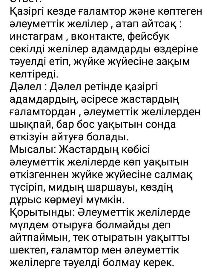 Осы шақта《Əлемді алаңдатқан əлеуметтік желілер》тақырыбына《Төрт сөйлем》тəсілімен өзіндік пікір жазыңдар.