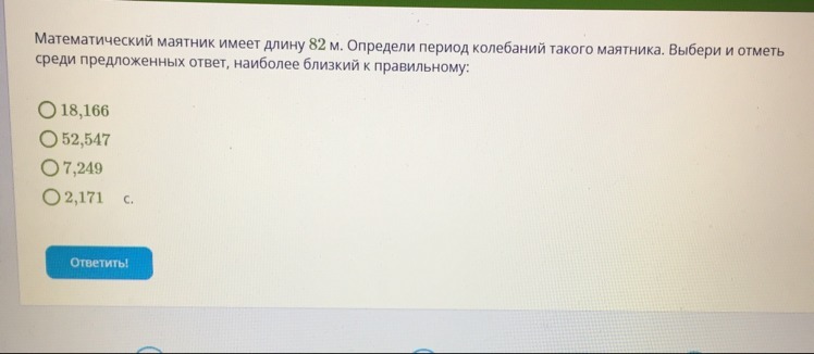 T = 6,28*√82/9,8 = 18,166 c - ответ 1.