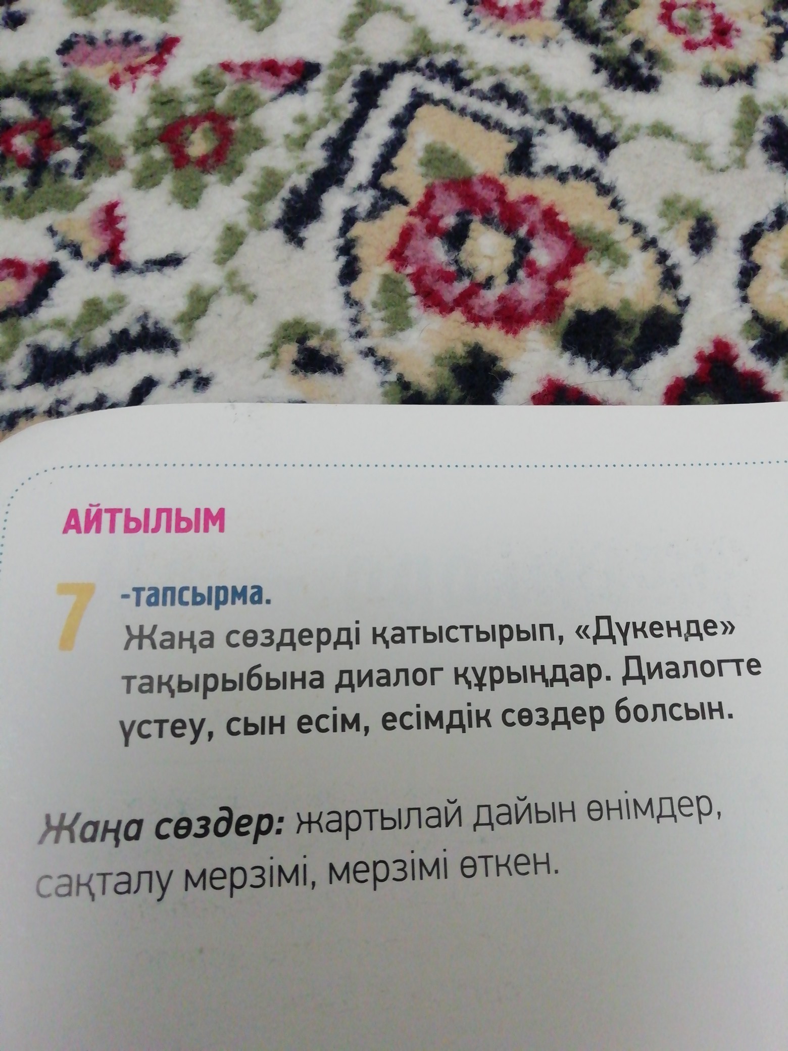 Жаңа сөздерді қатыстырып <Дұкенде>тақырыбына диалог құрындар. Диалогте үстеу, сын есім, есімдік сөздер болсын. Жаңа сөздер:жартылай дайын өнімдер, сақталу мерзімі өткен.