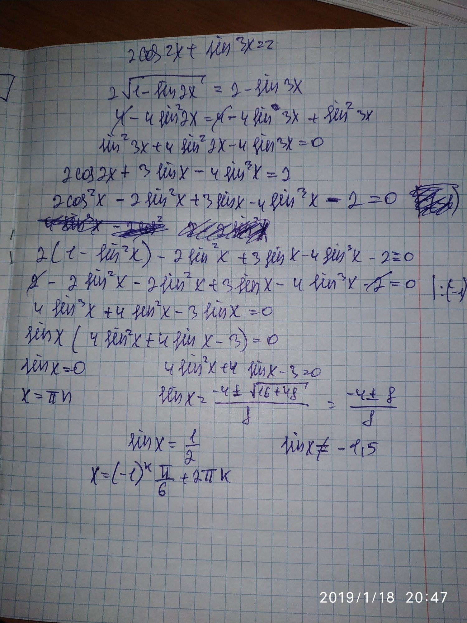 sin(x)=0 4*sin^2(x)+4*sin(x)-3=0