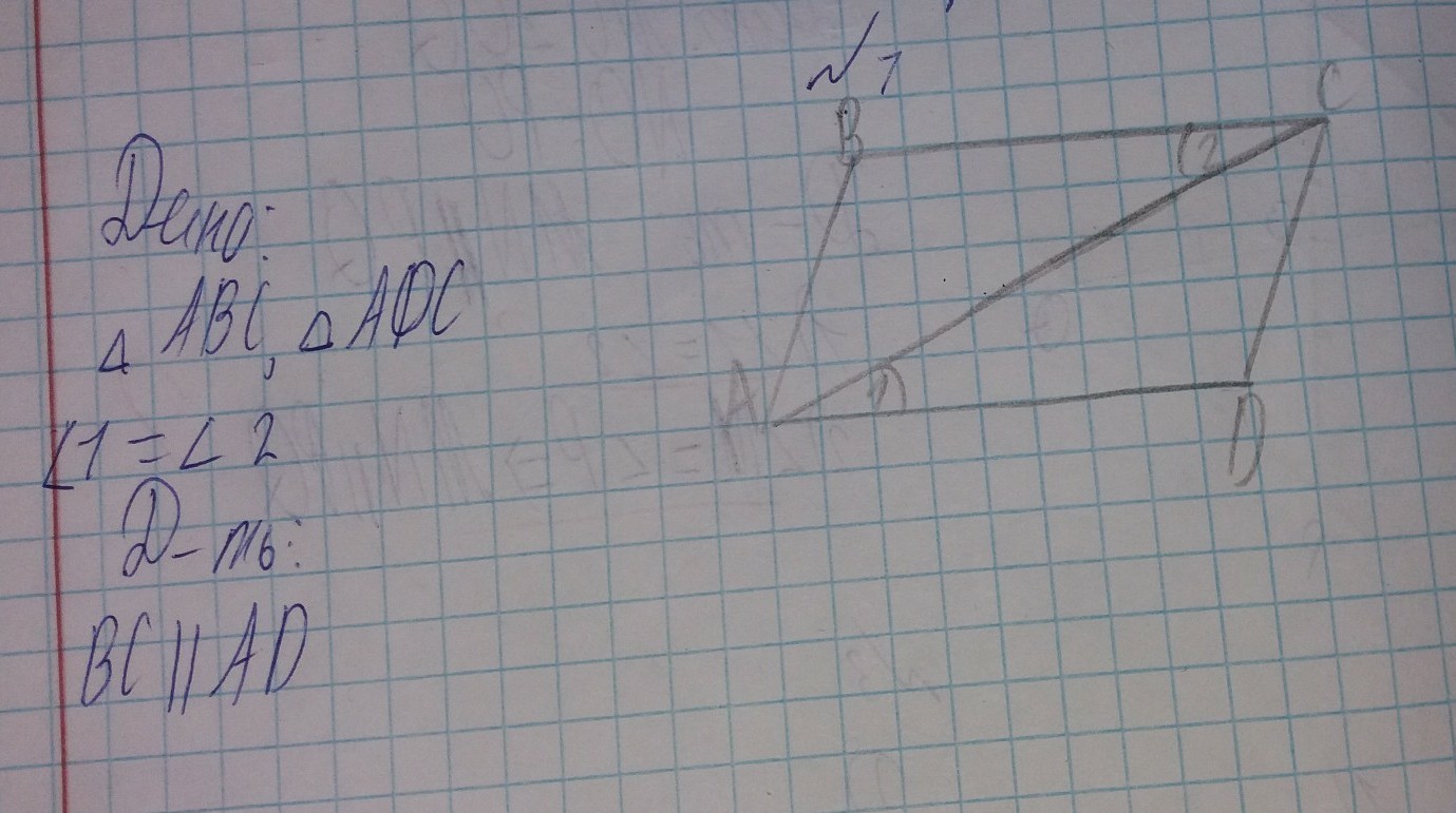угол 1 и 2 внутренние разносторонние. От сюда BC II AD