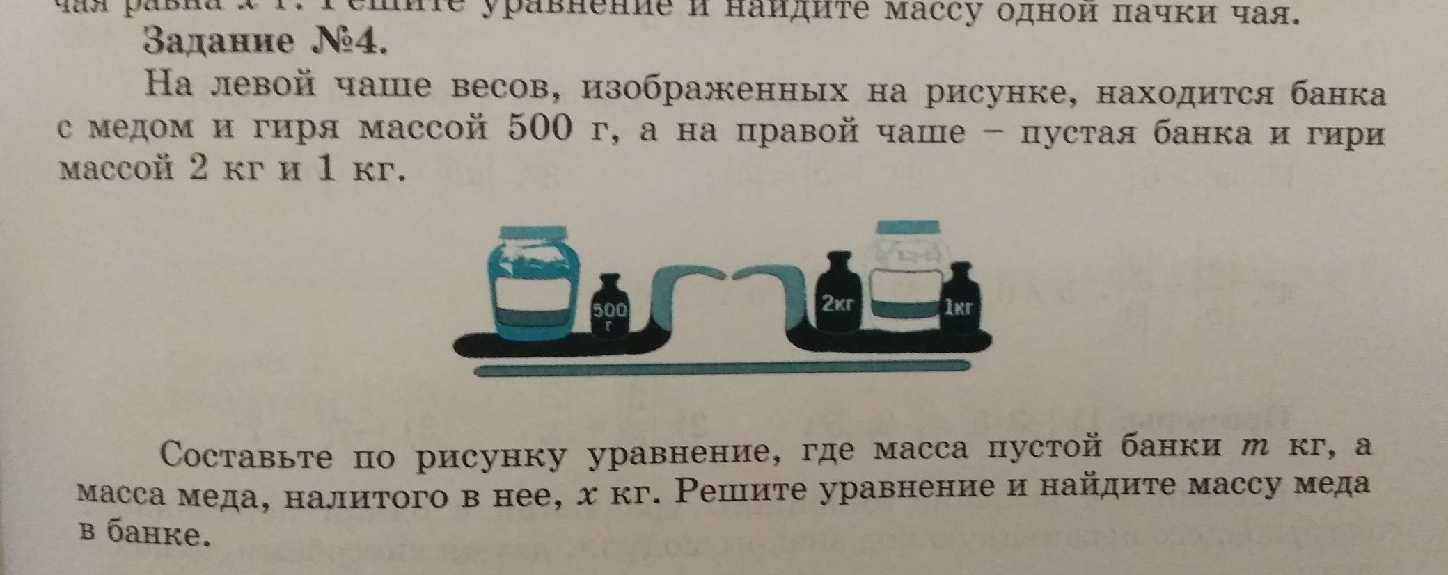 Правая чаша весов: пустая банка и 2кг и 1 кг