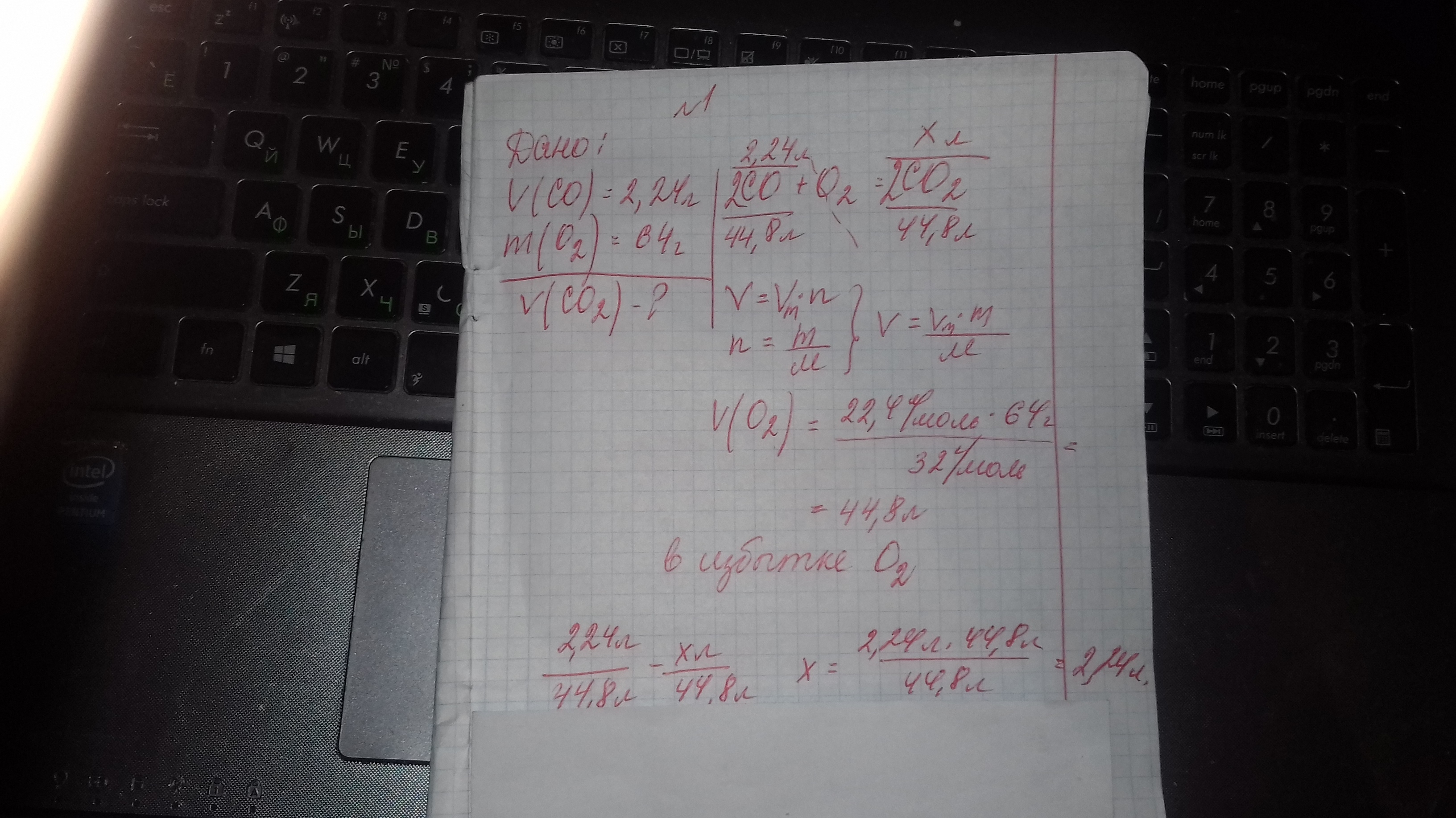 1)Найдите объем углекислого газа, который образуется при взаимодействии 2,24 л угарного газа и 64 г кислорода.