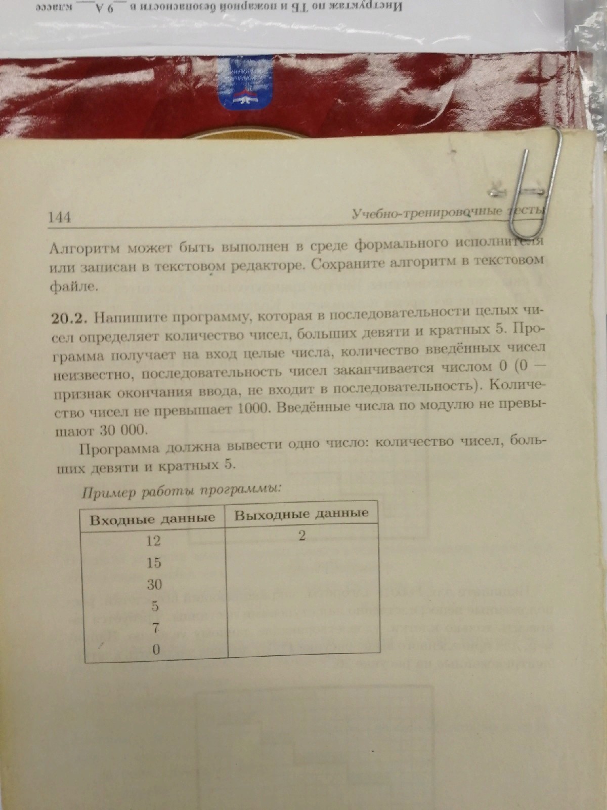 помогите пожалуйста, напишите программу, которая в последовательности целых чисел определяет количество чисел, больше десяти и кратных 5. Программа получает на вход целые числа, количество, последовательность чисел заканчивается 0