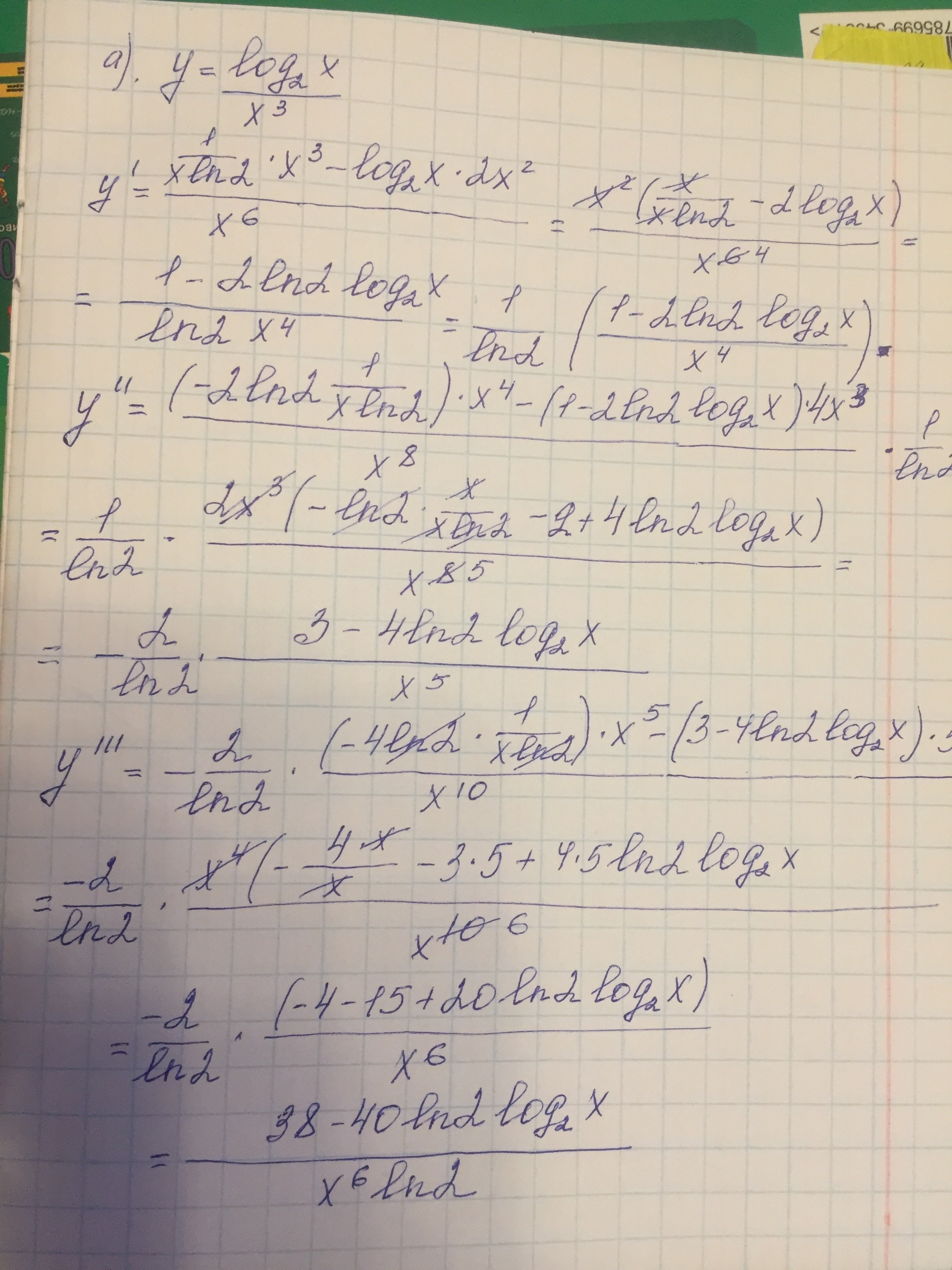 а) y = log2x / x^3 - где 2 икс снизу