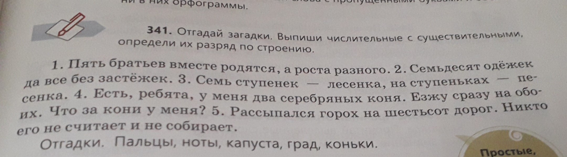 1. Ответ: пальцы; пять братьев (разряд: простое)