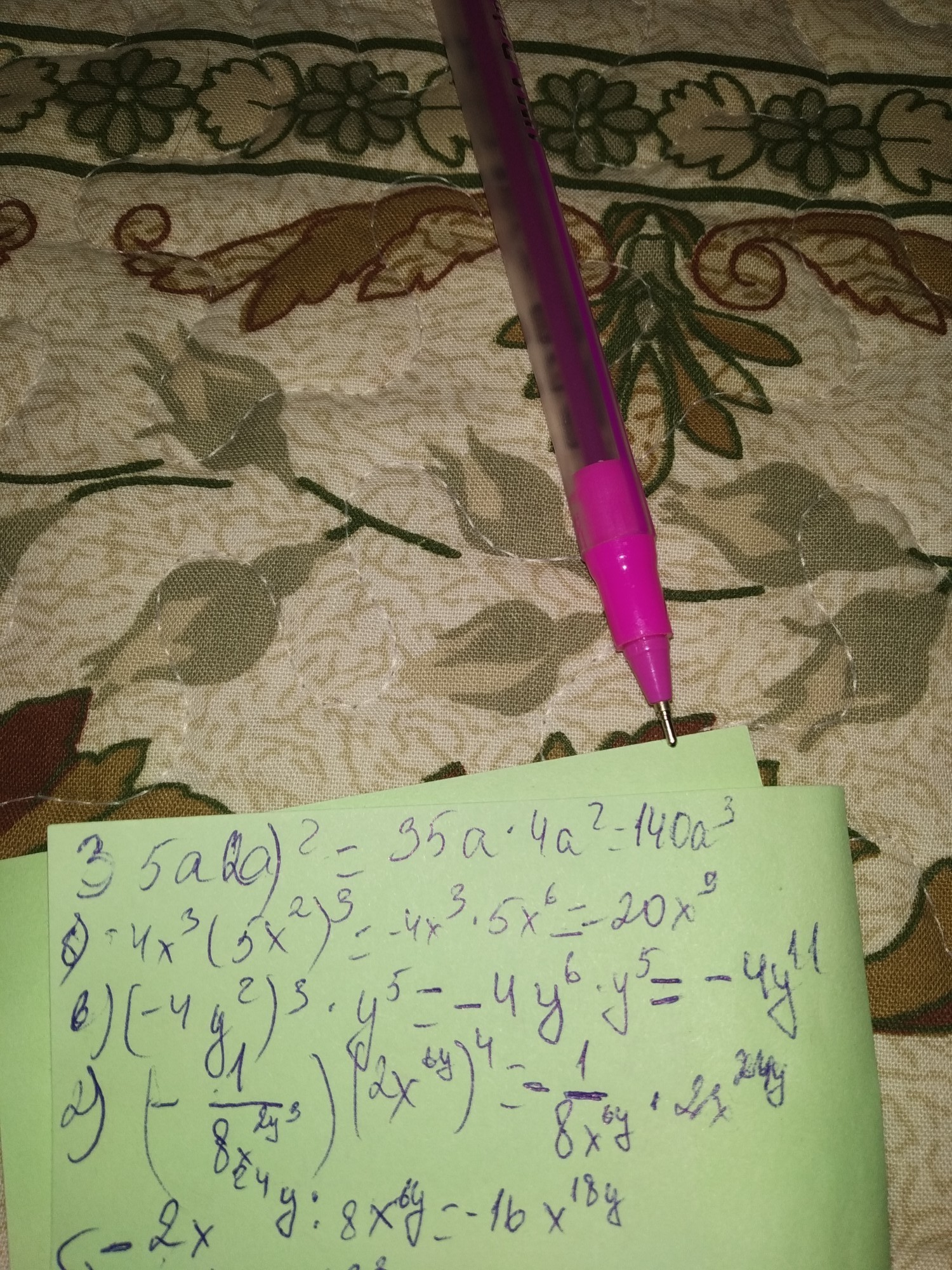 1)а: 35а*(2а)^2;б:-4x^3*(5x^2)^3;B:(-4y^2)^3*y^5.