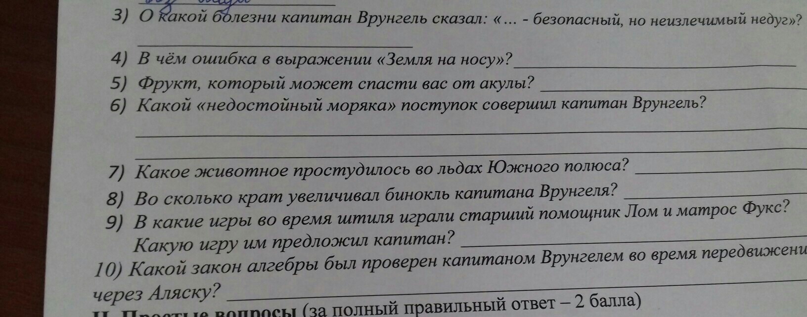 Ответьте на несколько вопросов по произведению "Приключения кааитана Врунгеля"