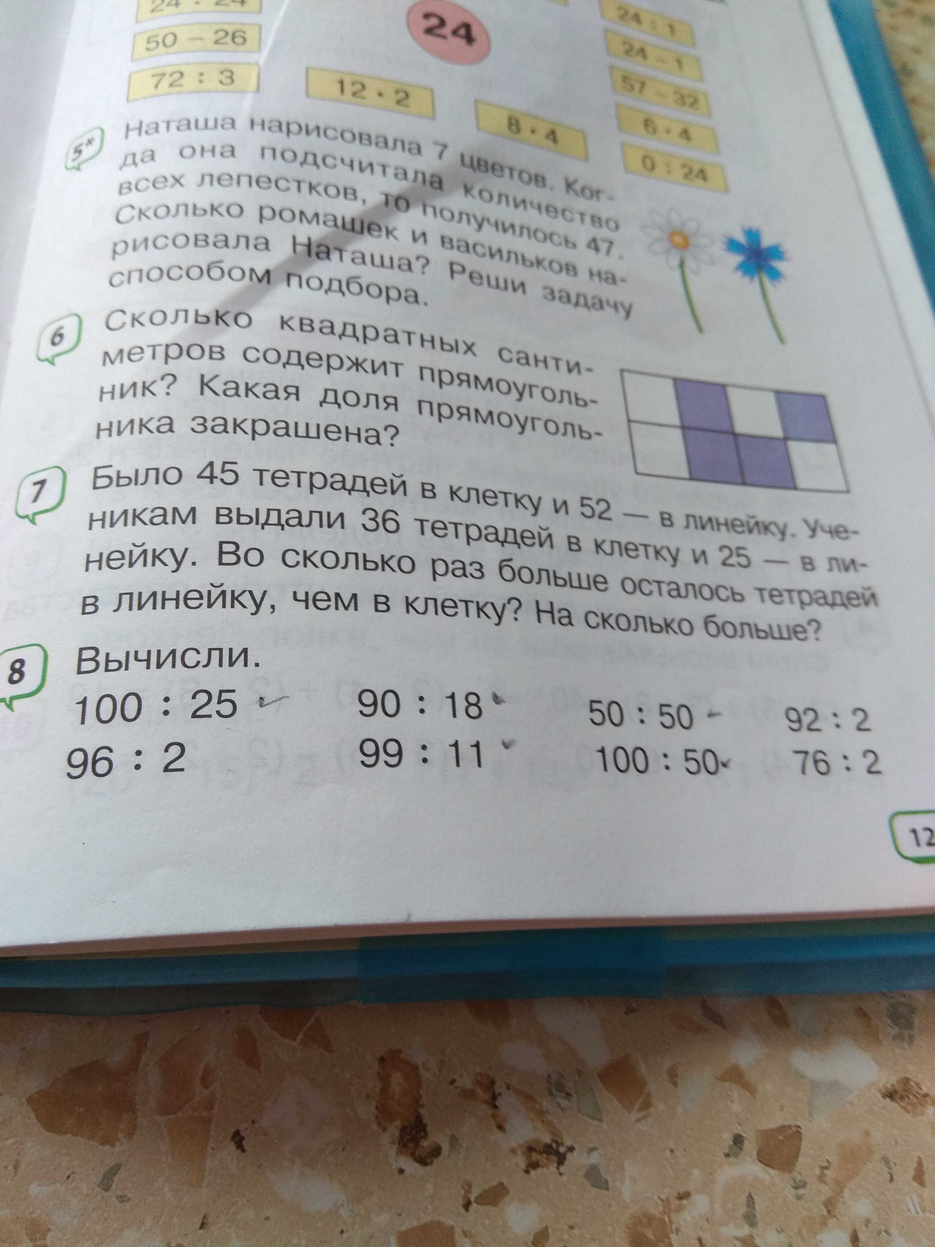 1)45-36=9(т) оставшиеся тетради в клетку