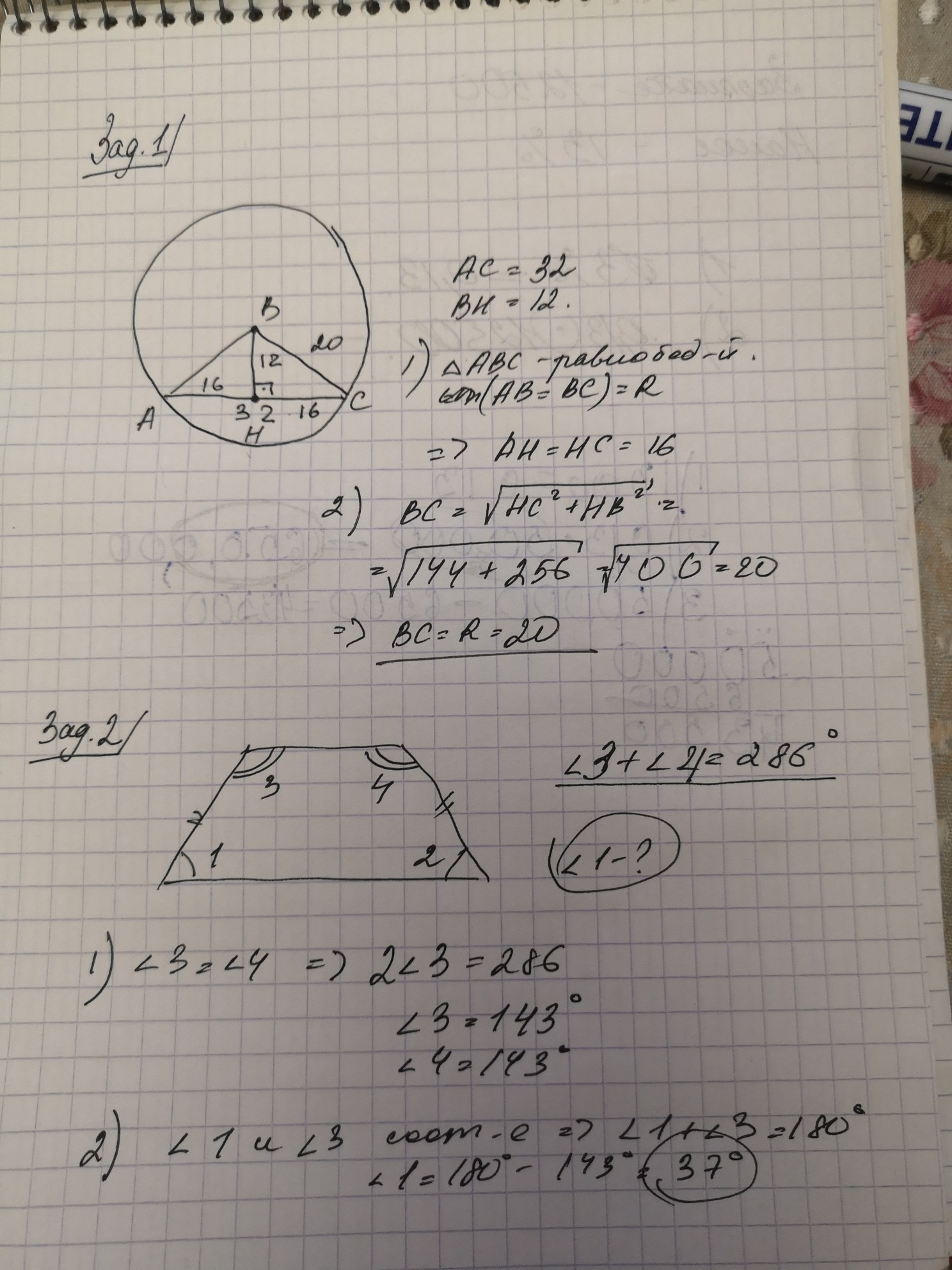 2 задание.в равнобедренной трапеции сумма углов прилежащих к меньшему основанию равна 286 градусов. Найдите величину острого угла трапеции. Ответ выразите в градусах.