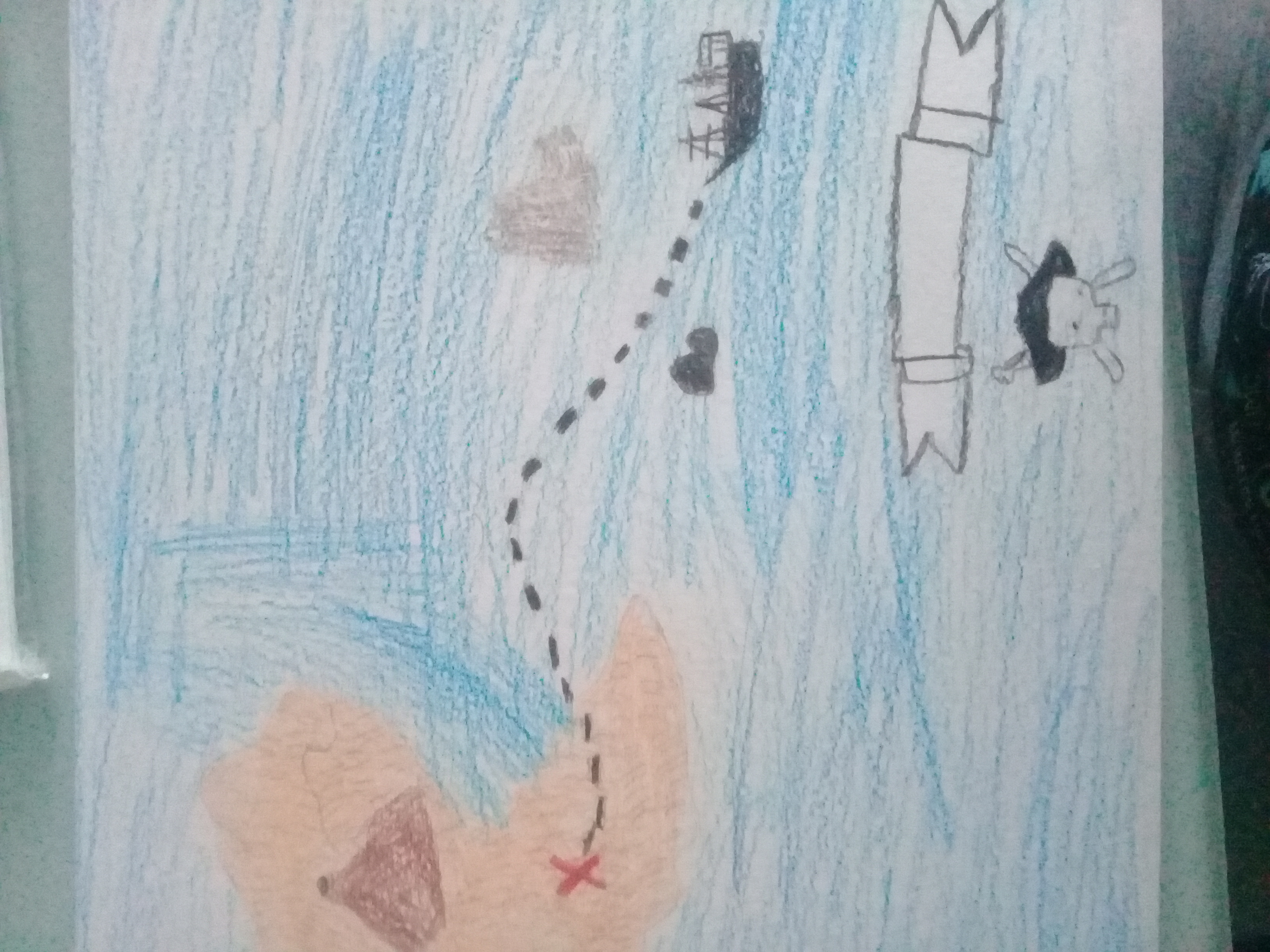 чтобы доехать пиратам до их дорогих сокровищ им надо проехать через один камень(не врезаясь в него) и пираты увидят один одинешенький остров на этом острове их клад!!!!