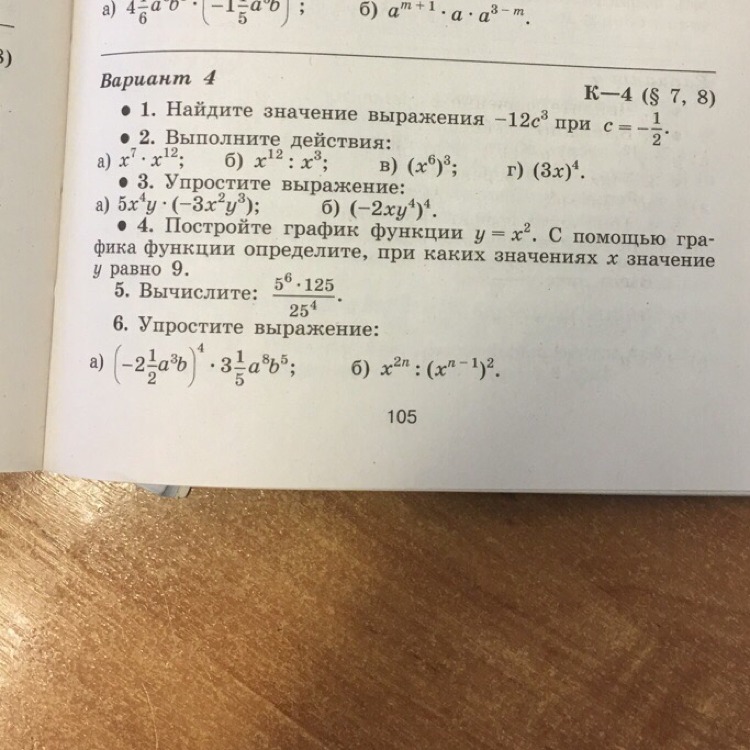 a)x^7+12=x^19; b) x^12-3=x^9; в) (x^6) 3=x^6+3=x^9; г) (3x) ^4=3x^4;