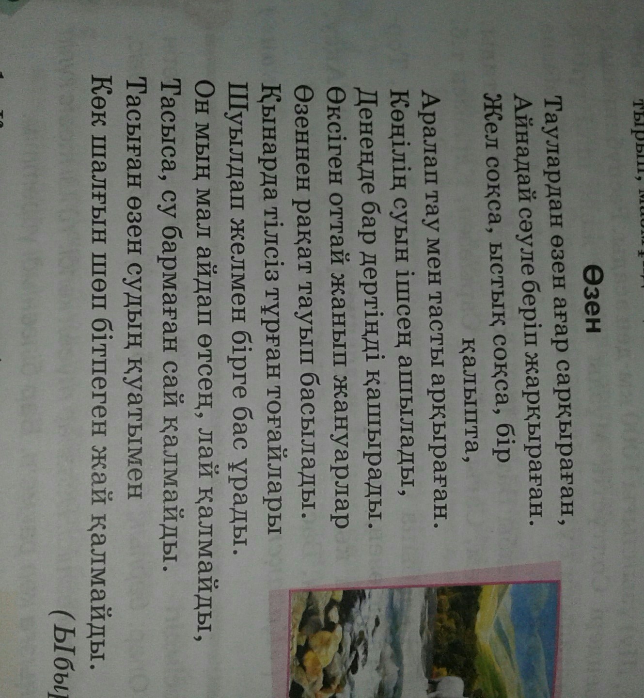 "Ол таудан сарқырап өзен ағып жатыр"