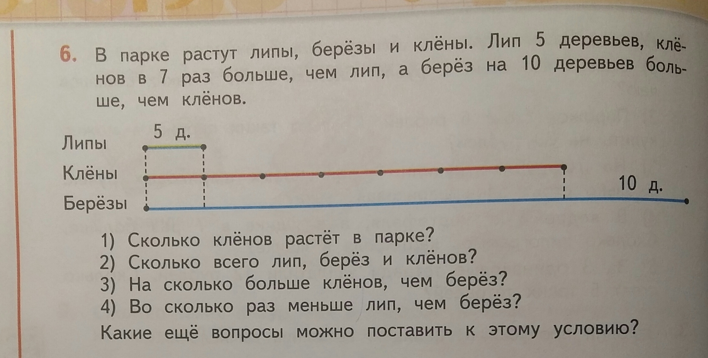 2) 35+10=45 берез; 5+45+35=85 деревьев всего