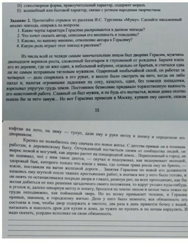 2) По моему мнению автор хочет показать насколько Герасим чужд городу. Его огромный рост, широкие плечи совершенно не вписываются в картину городской жизни, узких улиц, крохотных комнат.